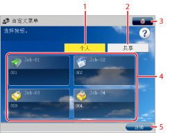 已注册的“个人”按钮/“共享”按钮显示在该区域中。