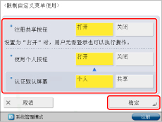 选择[个人]或[共享]可以设置认证后显示的默认屏幕。