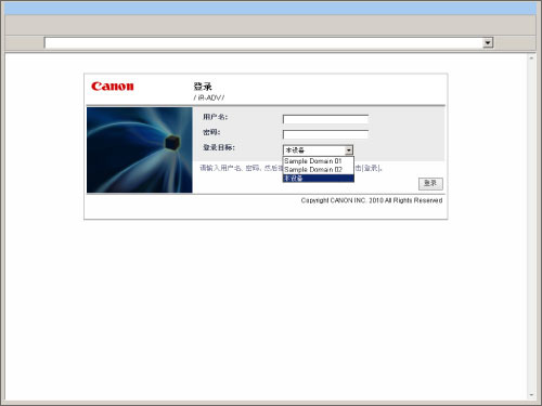 允许用户认证的域名或LDAP服务器的服务器名按字母顺序显示在“登录目标”下拉列表中。但是,无论“登录目标”下拉列表中显示的项目如何,本机所属域显示在列表的最上方,而[本设备]显示在列表的最下方。