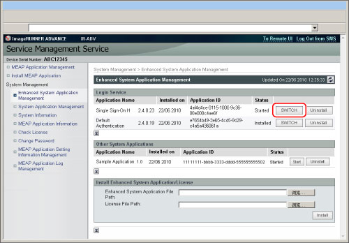 要同时使用Local Device Authentication和“部门识别码管理”,在登录服务切换到SSO-H后,请更新Local Device Authentication用户数据(“部门识别码”和相应的“密码”),并将[部门识别码管理]设置为“打开”。