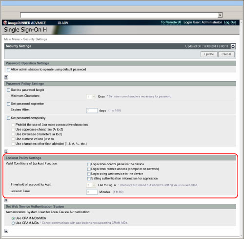 对于SSO-H,可以设置锁定功能,即临时停止用户认证失败的用户的登录服务。设置锁定功能可以增加安全性。