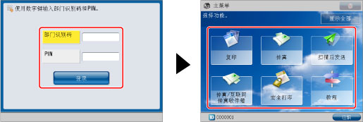(数字键)输入“部门识别码”和PIN。