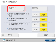 如果将[部门识别码管理]设置为[打开],则不管限制功能设置如何,上面所述以外的功能和MEAP应用程序将按照如下说明运行。