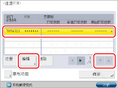 显示要更改其PIN的部门→选择该部门→按[编辑]。