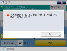 在“基本复印功能”屏幕和“打印设置”屏幕上,显示具有最少“剩余计数”的两项功能。但是,如果“打印总数限制”最少,则仅显示“打印总数限制”。