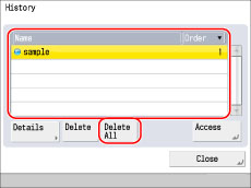 选择[Name](名称)或[Order](顺序)可以按升序或降序对URL历史记录列表进行排序。