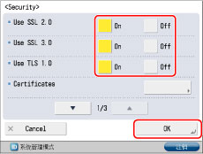 如果在没有安全防护的网络环境中使用本机,建议将其设置为[On](打开)。