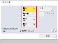 如果添加标准尺寸的纸张时纸张尺寸显示为[自定义],请按[自定义尺寸]→[取消设置]。将自动检测合适的纸张尺寸并显示在屏幕上。
