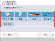 可以在“复印”屏幕的[选项]中为常用的功能创建快捷键。也可以直接恢复在[常用设置]中注册的按钮。