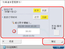 如果“设置/注册”的[管理设置]中的[显示日志]设置为“关闭”,则不会显示[传真通信管理报告]。