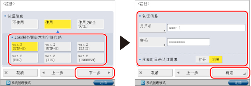 为<LDAP服务器版本和字符代码>选择项目→按[下一步]。