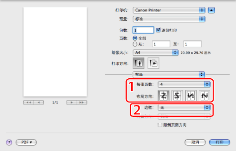 打印布置在一张纸上的多个页面(请参阅“在一张纸上打印多页”)。