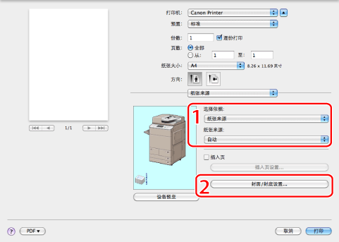 如果使用Mac OS X10.5或更高版本,单击[打印机]右侧的[
