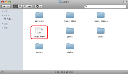 在安装文件夹中,双击[Documents] → [Guide] → "index.html" 图标。