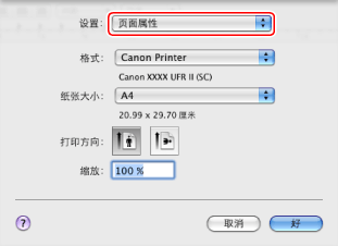 在Mac OS X 10.5或更高版本中,根据所使用的应用程序,可能不显示[页面设置]对话框。