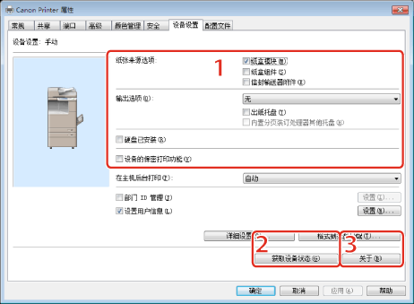 可以设置设备上所安装的打印机选项(例如进纸选项,出纸选项等)。