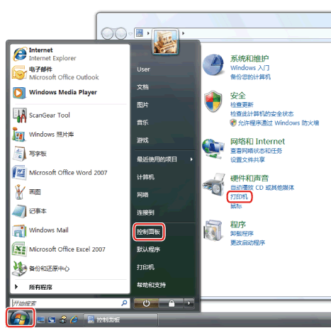 ](开始)→[设备和打印机]。对于Windows XP Professional/Server 2003,单击[开始]→[打印机和传真]。