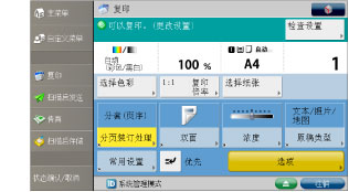 此处显示作业和复印操作的进度以及设备和耗材的状态。此外,根据所使用的登录服务,可能显示“部门识别码”或用户名。