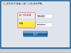 出现用于输入“部门识别码”和PIN的屏幕。