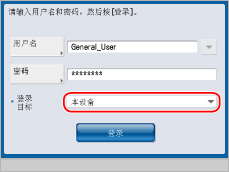 如果Local Device Authentication设置为用户认证系统,则<登录目标>下拉列表中只显示[本设备]。