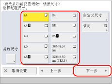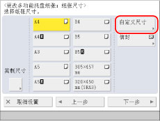 (清除)→输入正确的数值。要选择存储在尺寸按钮([S1]到[S4])中的已注册纸张尺寸,必须先将非标准纸张尺寸存储在尺寸按钮中。有关存储非标准纸张尺寸的说明,请参阅"注册/编辑/删除自定义纸张尺寸."