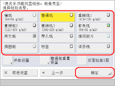要在已有打印内容的纸张背面打印,请将该纸张添加到多功能托盘中,然后在出现的纸张选择屏幕上按[双面纸第2面]。