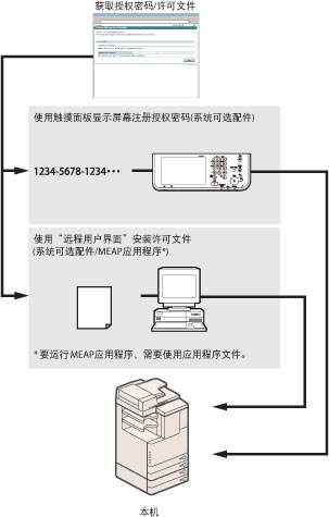 http://canon.com/fau/downloads 下载系统选项/MEAP应用程序的手册和相关软件时,请准备包含于本包装的授权存取号证书。