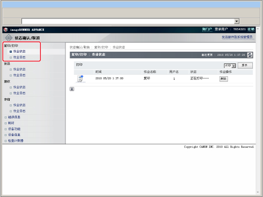 显示包括“存储接收收件箱”或“保密传真收件箱”中的作业在内的本地打印作业日志。
