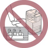 如果踩踏电源线、用装订针固定电源线或将重物置于其上,可能会损坏电源线。继续使用损坏的电源线可能会引发事故,例如火灾或触电事故。