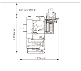 安装了“双面自动输稿器-AJ1”、“鞍式分页装订处理器-M1”、“三路出纸组件-C1”和“缓冲区组件-K1”时: