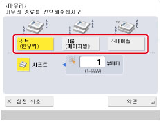 사용자 설정 크기, 봉투, OHP 필름, 트레이싱 페이퍼 또는 라벨용지를 선택한 경우에는 마무리 모드를 설정할 수 없습니다.