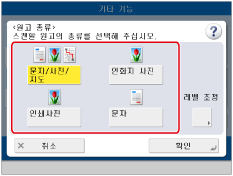 원고가 OHP 필름인 경우, 원고 종류를 선택하고 → 원고에 가장 적합한 레벨로 농도를 조절하십시오.