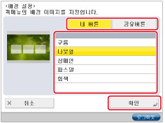 배경을 설정할 버튼을 선택하고 → 배경 설정을 선택한 후 → [확인]을 누릅니다.