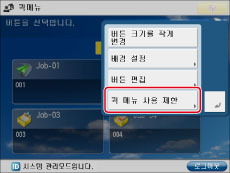 시스템 관리자 또는 SSO-H 시스템 관리자(Administrator)/네트워크 관리자(NetworkAdmin) 또는 디바이스 관리자(DeviceAdmin)만 퀵 메뉴 접근 제한 설정을 구성할 수 있습니다. 관리자 종류에 대한 자세한 내용은 "관리자 설정."을 참고하십시오.