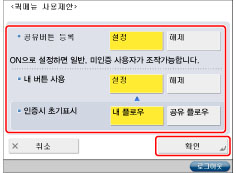 인증 후 표시되는 기본 화면을 설정하려면 [내 버튼] 또는 [공유버튼]을 선택합니다.