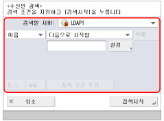 서버와 이 기기의 시간 설정이 5분 이상 차이가 나는 경우에는 LDAP 서버를 통해 수신인을 검색할 수 없습니다. 사용자 이름과 비밀번호가 정확하더라도 검색할 수 없는 경우 서버와 기기에 대한 시간 설정을 확인하십시오.