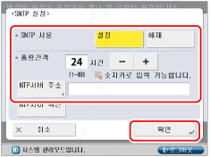 SNTP 시간 동기화를 사용하려는 경우 <SNTP 사용>을 [설정]으로 지정합니다.