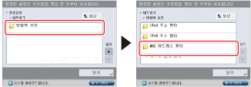 [네트워크]의 [방화벽 설정] → [MAC 어드레스 필터]를 누릅니다.