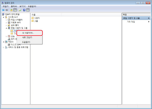 Active Directory 환경에서 사용자를 설정하는 절차는 위에 있는 절차와 다릅니다. 자세한 내용에 대해서는 Windows 설명서를 참고하십시오.