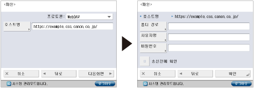 터치 패널 화면의 언어를 전환한 경우, [호스트명]과 [폴더 경로]가 제대로 표시되지 않을 수도 있습니다.