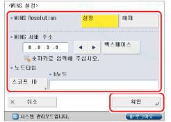 WINS 이름 확인을 사용하려면 <WINS Resolution>을 [설정]으로 지정합니다. [WINS 서버 주소]에서 WINS 서버의 IP 주소를 입력합니다.