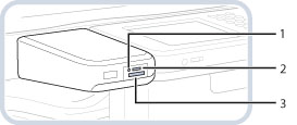 멀티미디어 리더/라이터-A2를 USB 디바이스 포트-E2 안에 연결할 수 있습니다.