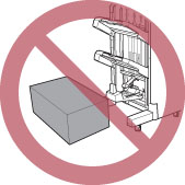 피니셔의 트레이 위에 출력 용지 이외의 다른 물체를 놓지 마십시오. 트레이가 손상될 수 있습니다.