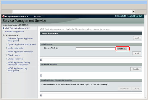 설치한 응용 프로그램에 대한 라이센스 파일을 추가, 비활성화 또는 삭제할 수 있습니다.