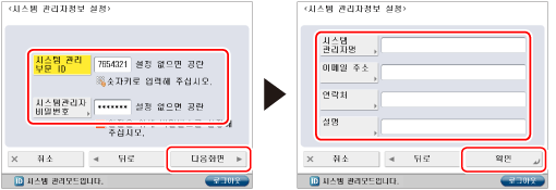 [시스템 관리자명]을 누르고 → 시스템 관리자명을 입력한 다음 → [확인]을 누릅니다.