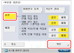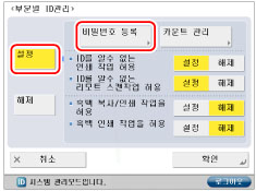 부문별 ID 관리가 복사 카드 리더-F1을 통해 활성화된 경우 부문 ID를 등록/삭제할 수 삭제할 수 없습니다.