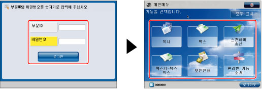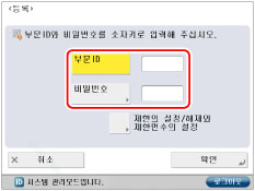 (숫자 키)를 사용하여 부문 ID 및 비밀번호를 입력합니다.