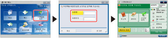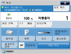 컨트롤 카드를 사용하여 기기를 관리하고 있으며 [기능제한]에서 제한이 '해제'로 설정되어 있는 기능이 있으면 기기가 시동될 때 메인 메뉴 화면이 나타납니다. 이 경우 제어 카드를 삽입하지 않고 1단계부터 절차를 수행합니다