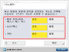 [부문별 ID관리]를 [설정]으로 지정한 경우 위에 설명된 기능이 아닌 다른 기능과 MEAP 응용 프로그램이 제한 기능 설정과 상관 없이 아래에 설명된 대로 작동합니다.