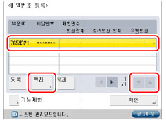 를 눌러 변경하려는 비밀번호가 있는 부문을 표시하고 → 부문을 선택한 다음 → [편집]을 누릅니다.